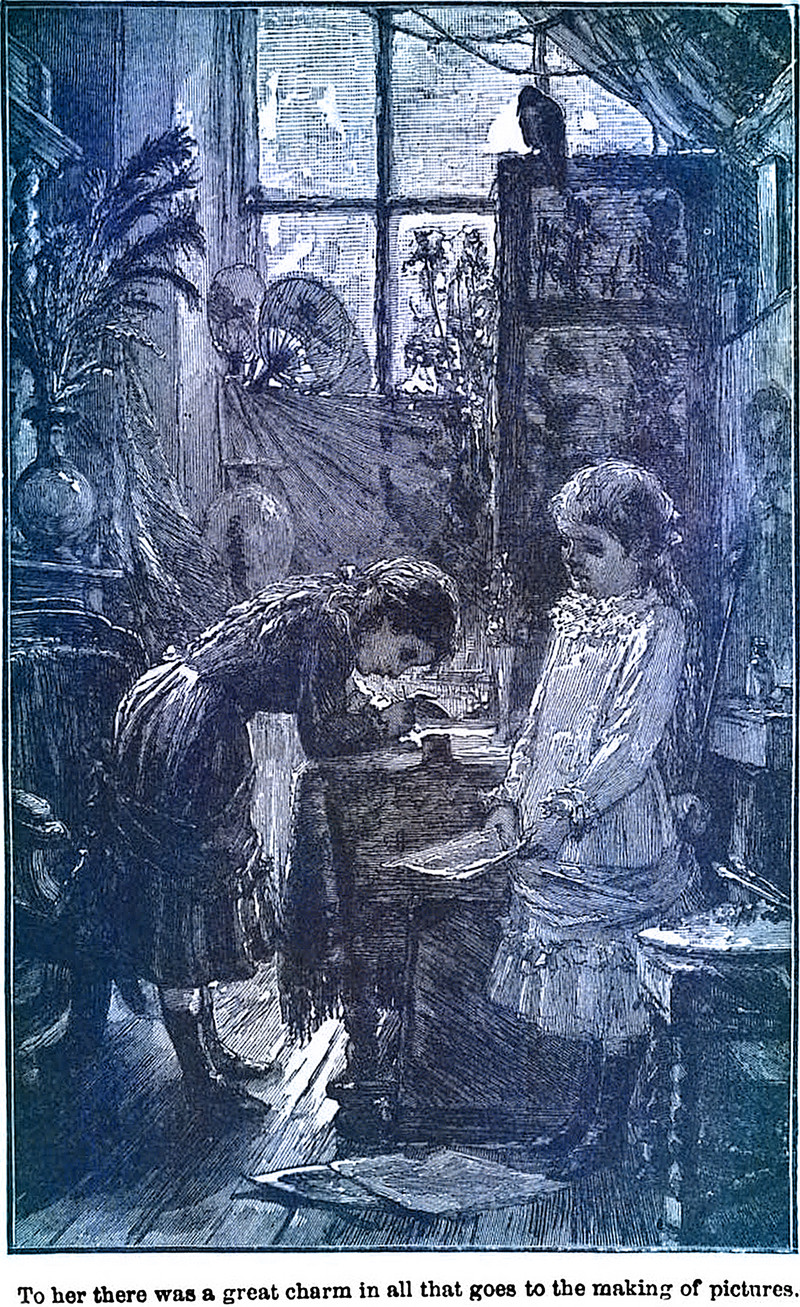 "To her there was a great charm in all that goes to the making of pictures."  From Eyebright by Susan Coolidge, 1879.