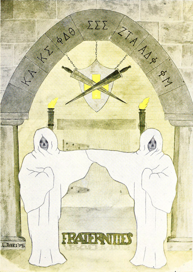 #vintage illustration #skull face #occult #vintage yearbook #yearbook #fraternities #secret society #hooded figure