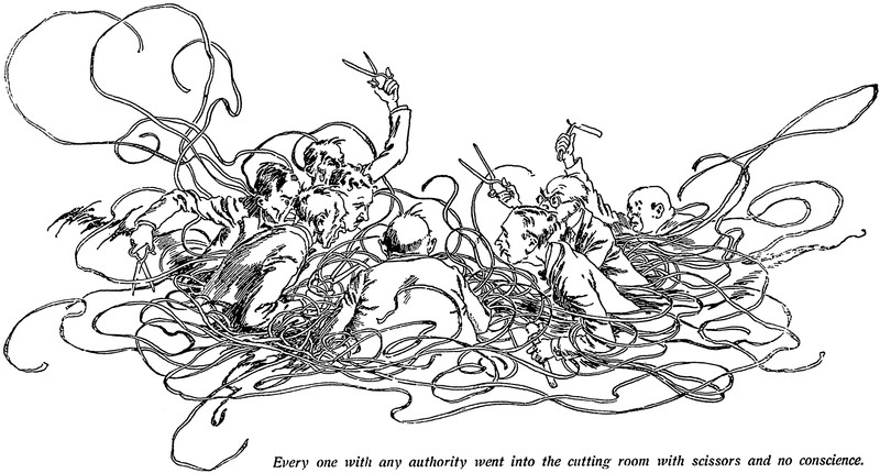 Here is revealed why so many movies are awful. "Every one with any authority went into the cutting room with scissors and no conscience." From Picture Play magazine, 1922.