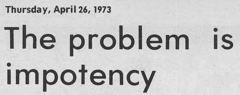 "The problem is impotency": a headline from Stoutonia, 1973.