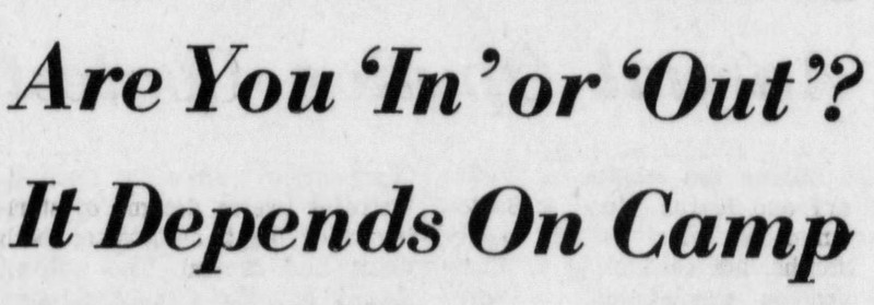 "Are you 'in' or 'out'?  It depends on camp."  From The Rotunda newspaper of Longwood College, 1966.