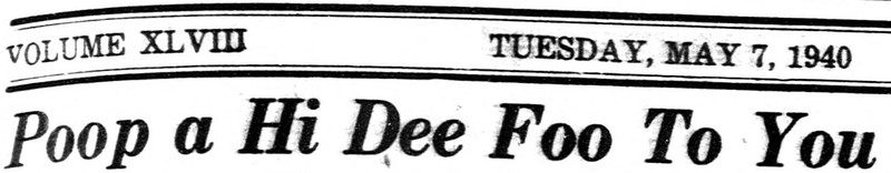This unsavory headline, "Poop a Hi Dee Foo To You," appears in the Daily Tar Heel, 1940.