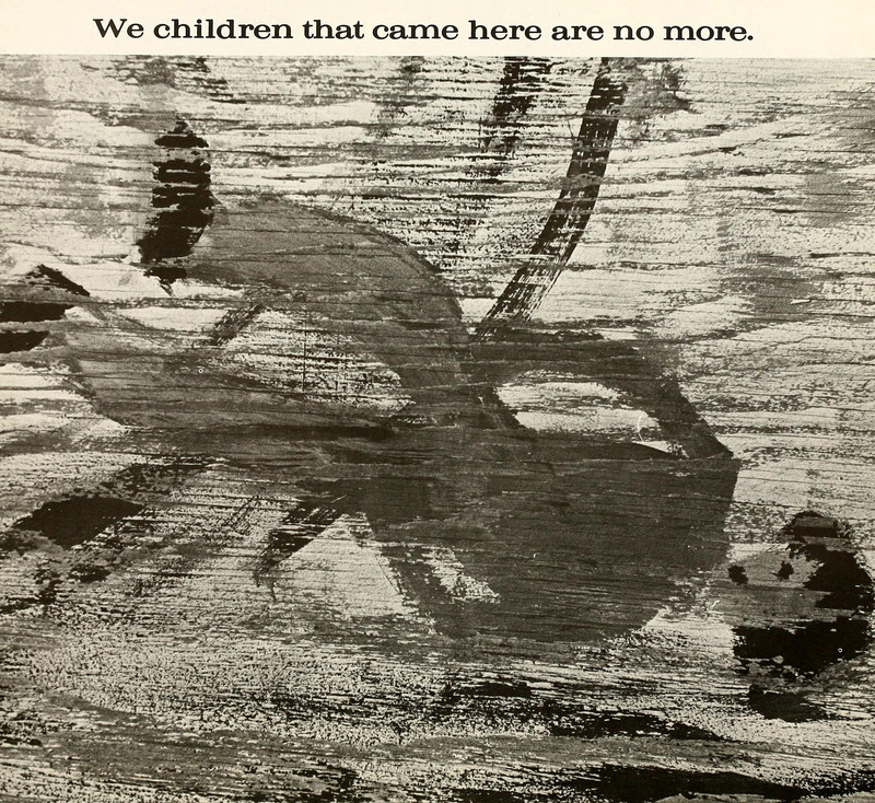 The first page of Washington College's 1969 yearbook says, "We children that came here are no more."   See How to Hoodoo Hack a Yearbook.
