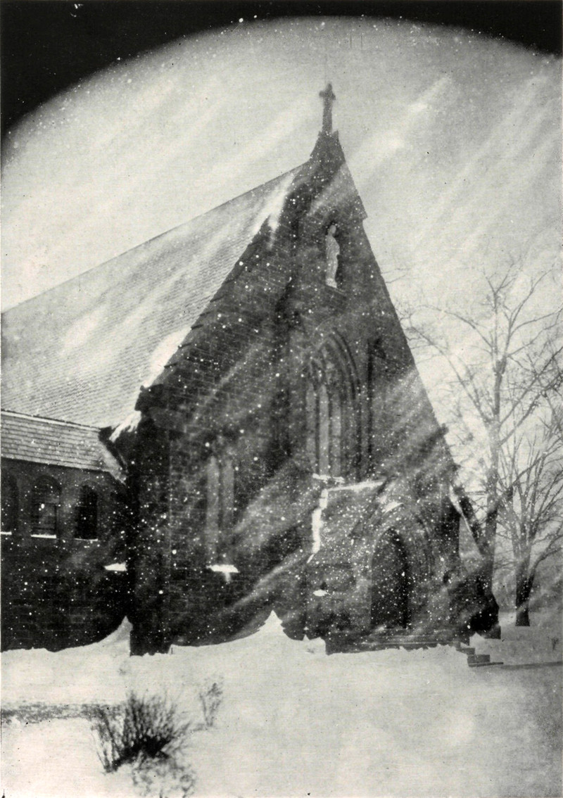 The blowing-snow effect in this photo, coupled with the curvature at the top, hints of a scene within a "snow globe."  From Seton Hall's 1926 yearbook.