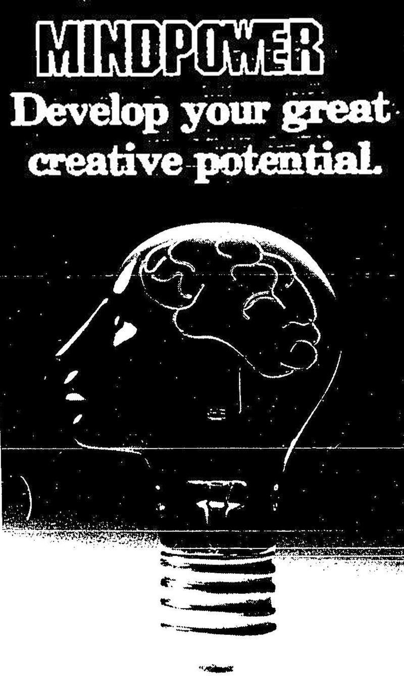 "Mindpower: develop your great creative potential."  From the Lambda newspaper of Sudbury, Ontario, 1982.
