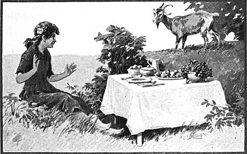 #vintage illustration #fairy tale #goat #picnic
