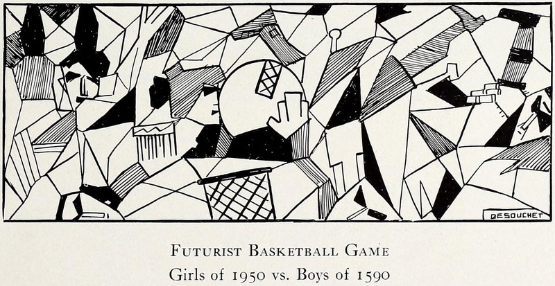 Futurist basketball game.  From Lewis Institute's 1913 yearbook.