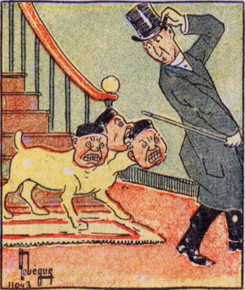 #vintage illustration #hybrid #human headed #cerberus #three headed