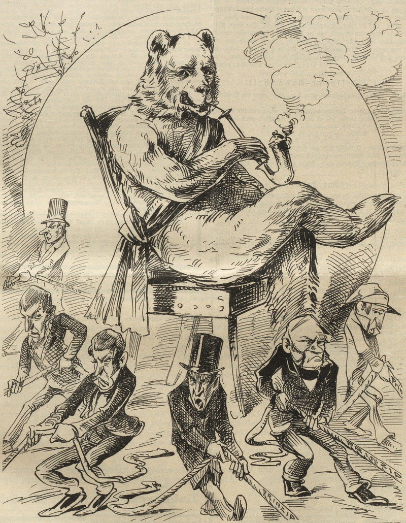 #vintage illustration #political cartoon #anthropomorphism #pipe smoker #bear
