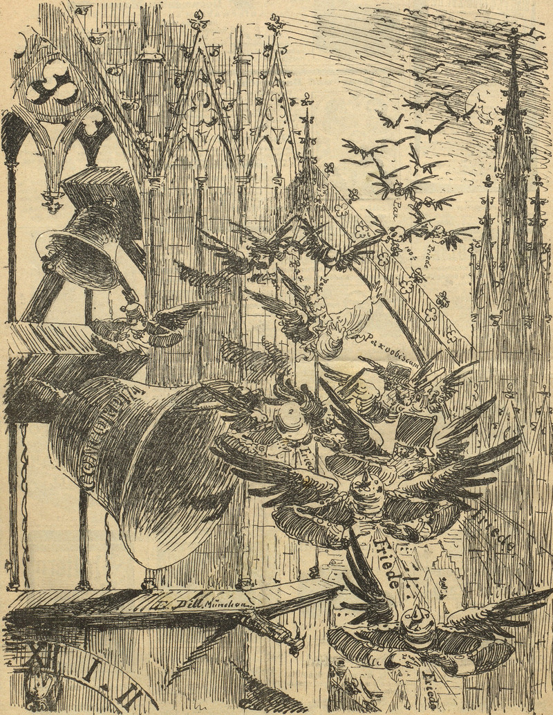 Birds with human heads, arms and hands.  From Nebelspalter, 1893.