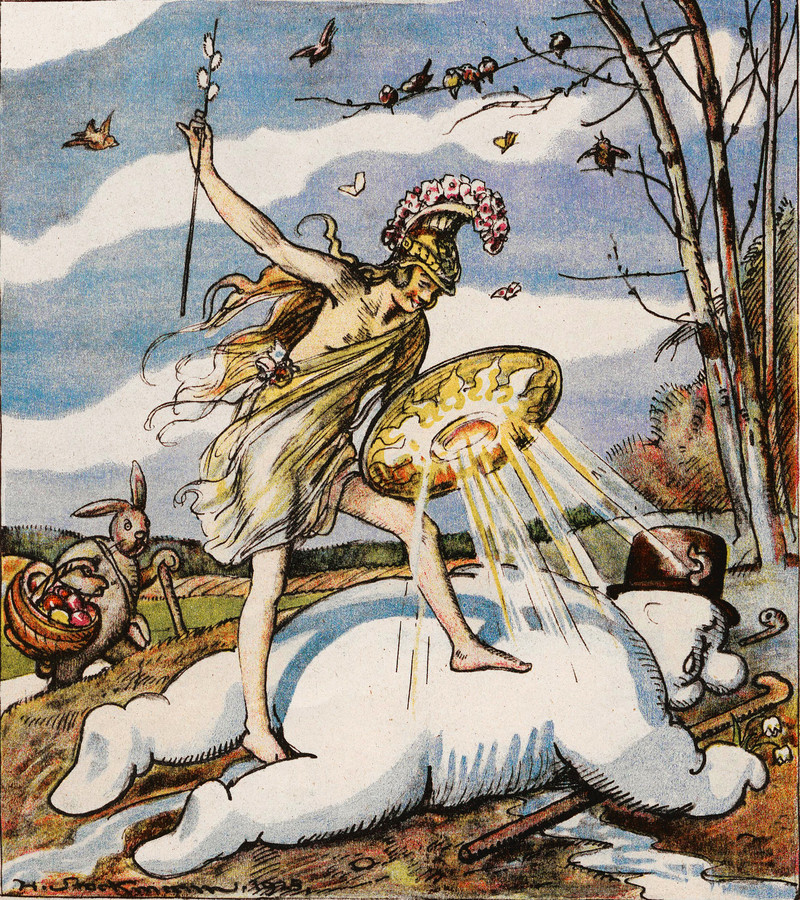 #vintage illustration #snowman #winter #spring #change of seasons #springtime