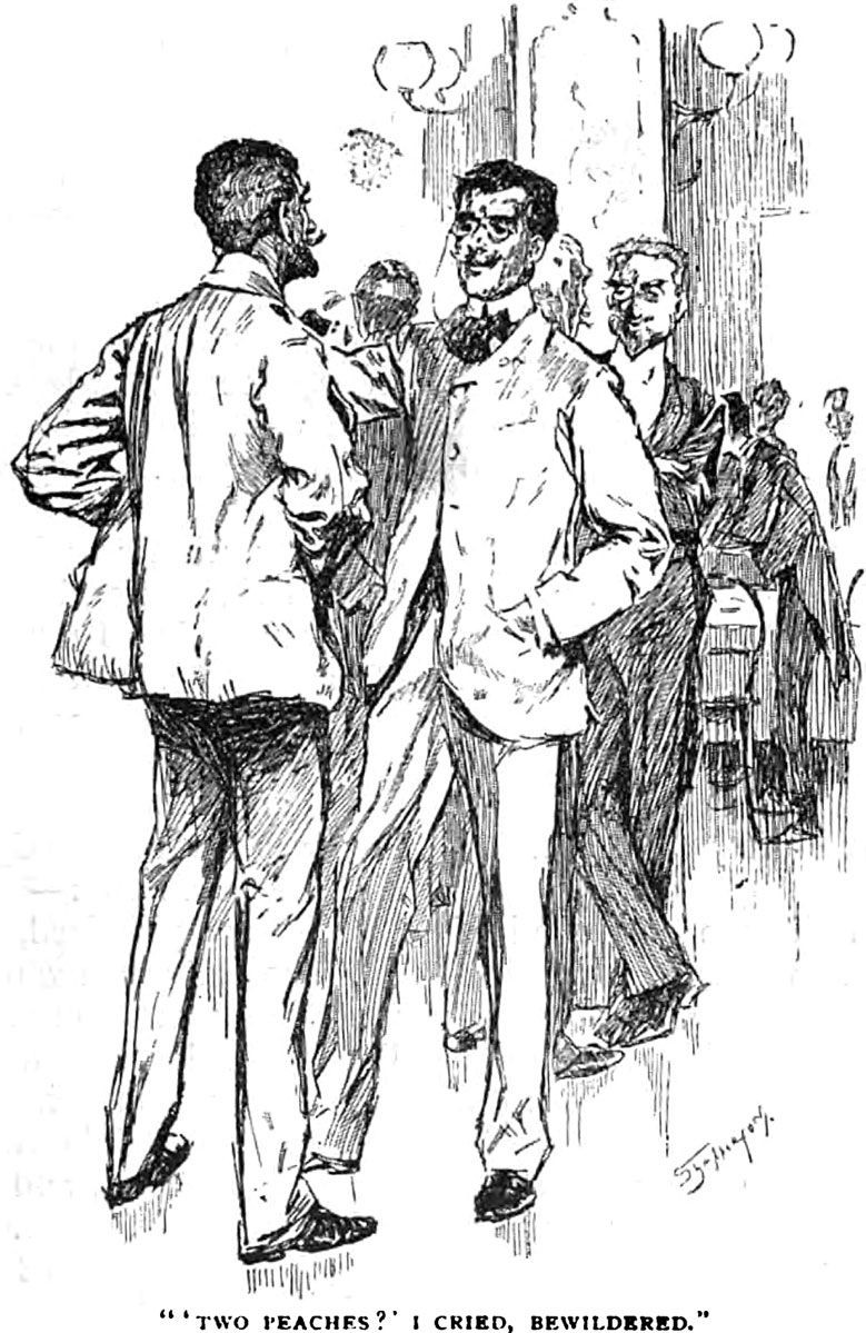 "'Two peaches?' I cried, bewildered." From The Strand (1897).