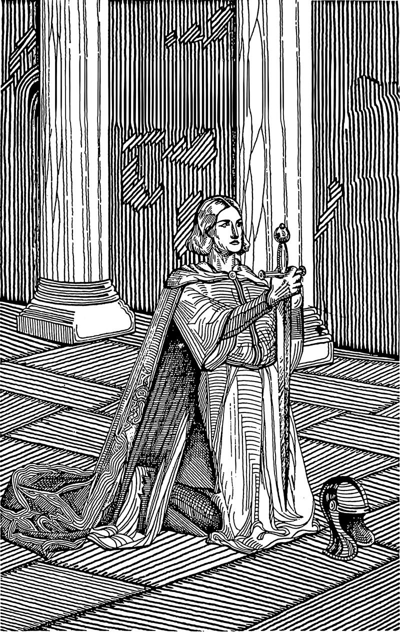#vintage illustration #knight #sword #vintage yearbook #yearbook #kneeling