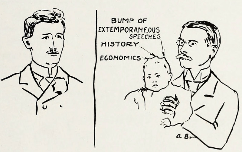 The phrenology of extemporaneous speeches.  From Purdue's 1898 yearbook.