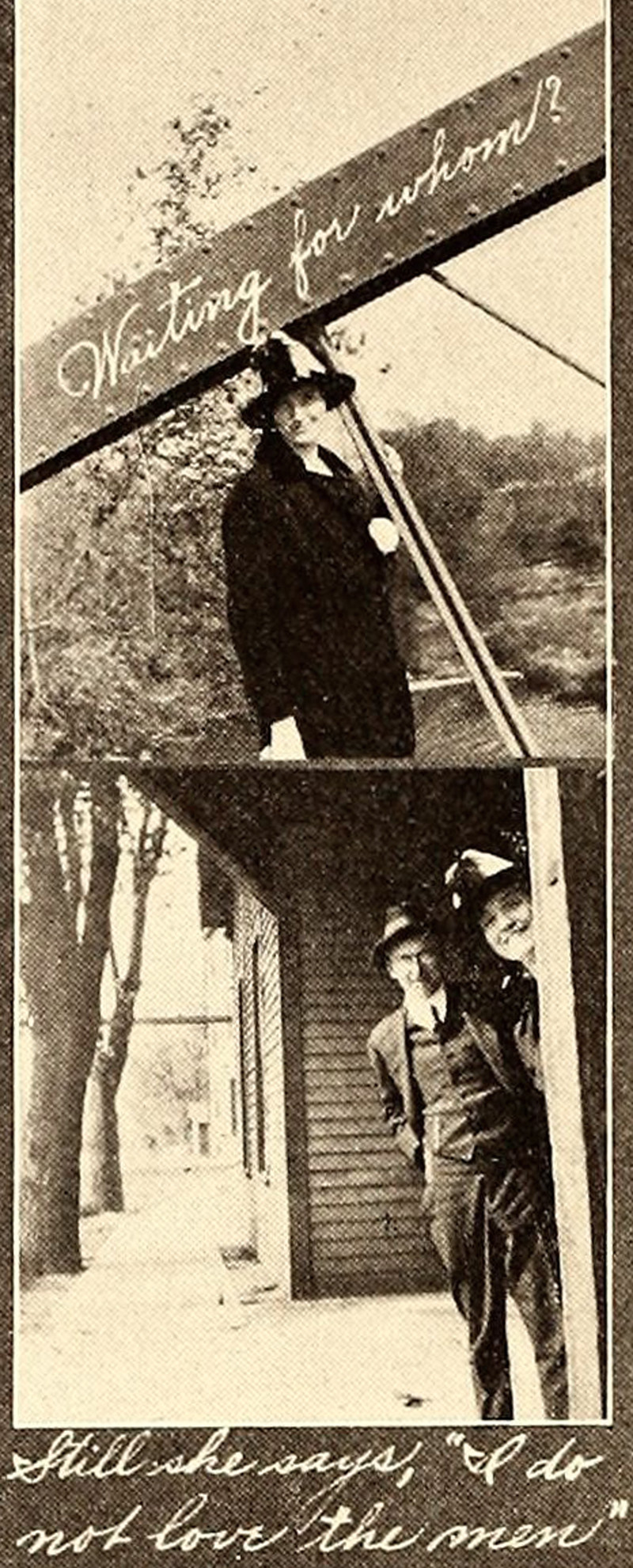 "Still she says, 'I do not love the men.'"  From Indiana State Normal School's 1916 yearbook.