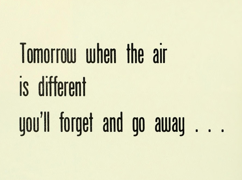 "Tomorrow when the air is different you'll forget and go away."  From American University's 1970 yearbook.