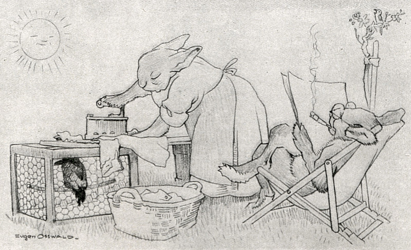 #vintage illustration #anthropomorphism #rabbit #ironing