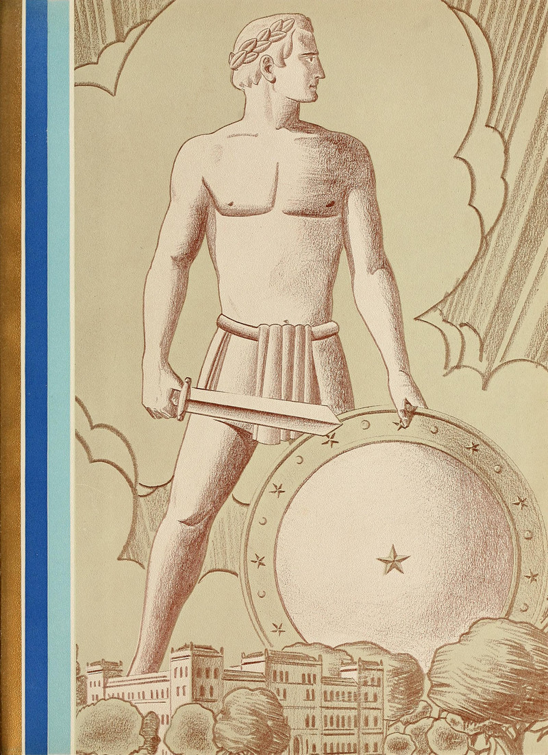 #vintage illustration #giant #sword #vintage yearbook #yearbook #shield