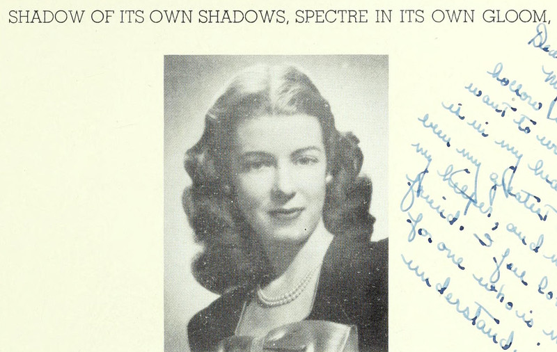 Reblog if you, too, are shadow of your own shadows, spectre in your own gloom.  From Emerson's 1946 yearbook.