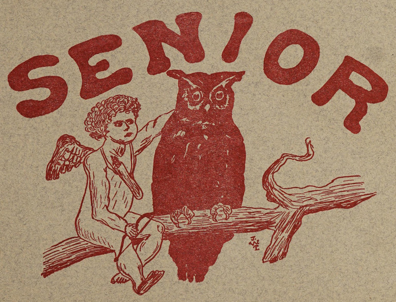 #vintage illustration #owl #cupid #vintage yearbook #yearbook