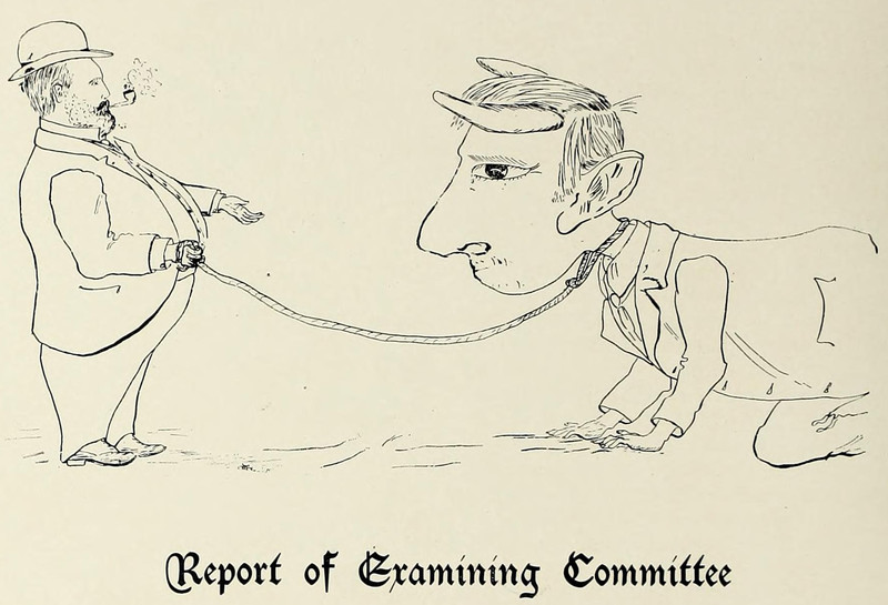 #vintage illustration #demon #minotaur #vintage yearbook #yearbook #pet walker #horned man