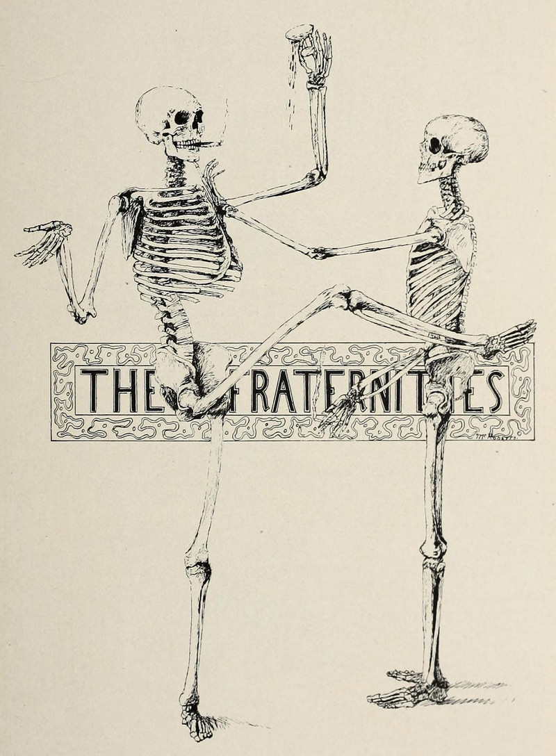 #vintage illustration #skeleton #fraternity #vintage yearbook #yearbook #secret society