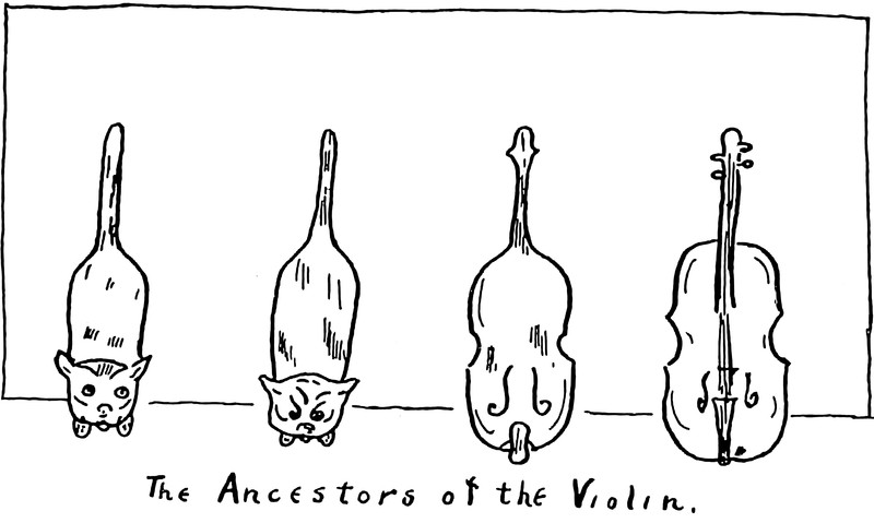 Cats are ancestors of the violin. [We once met a woman who said she had been a violin in a former life. Perhaps she wasn't so crazy.] The techniques described in