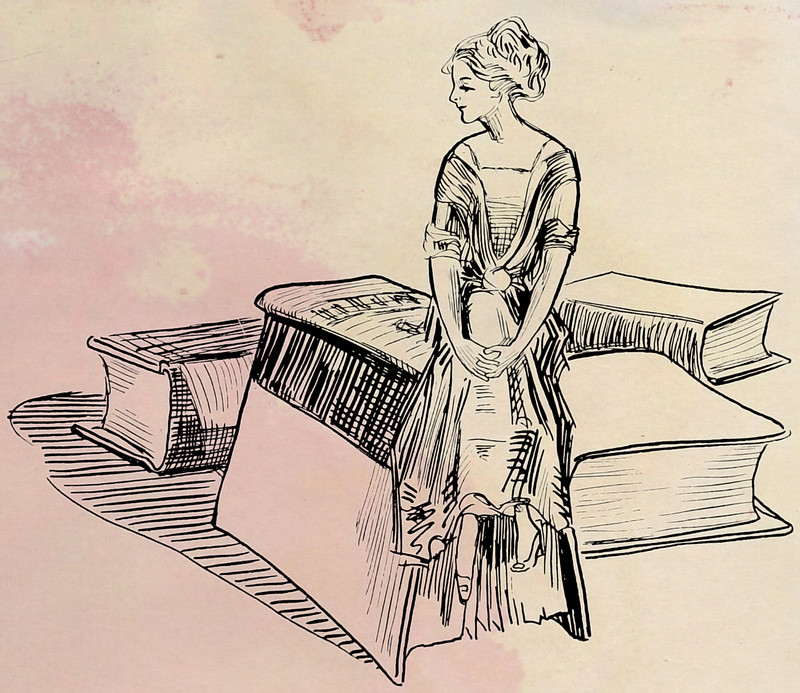#vintage illustration #books #vintage yearbook #yearbook #giant book #tiny woman #illustration