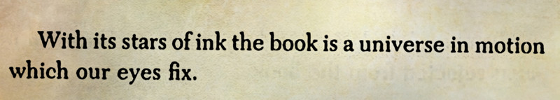 "With its stars of ink the book is a universe in motion which our eyes fix." —Edmond Jabès, "Counter Test" (via Gary Barwin).