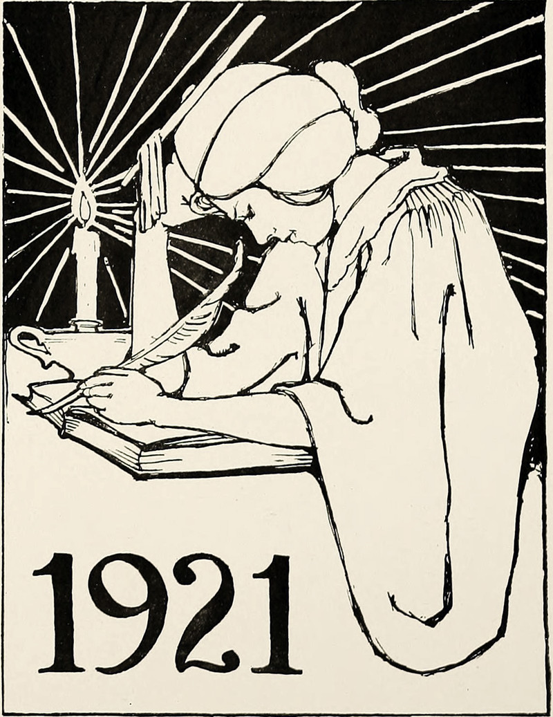 #vintage illustration #vintage yearbook #yearbook #quill pen #candle #1920s #scholar