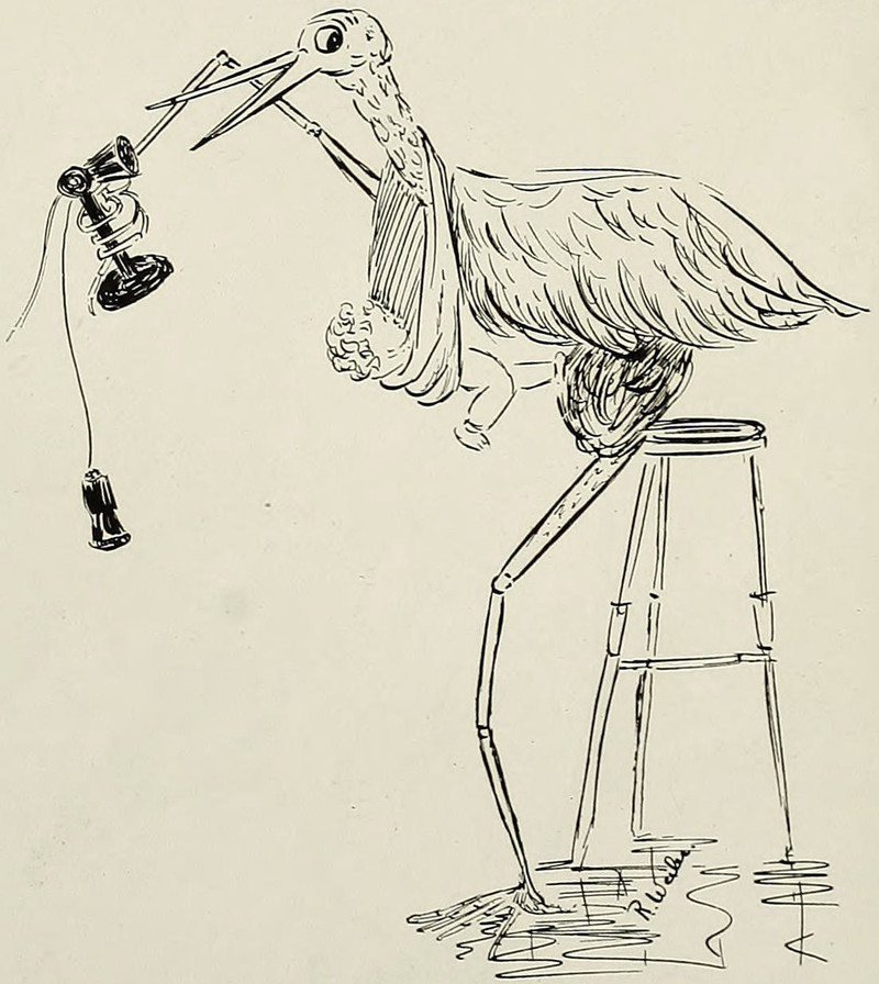 #vintage illustration #anthropomorphism #vintage yearbook #yearbook #bird #stork