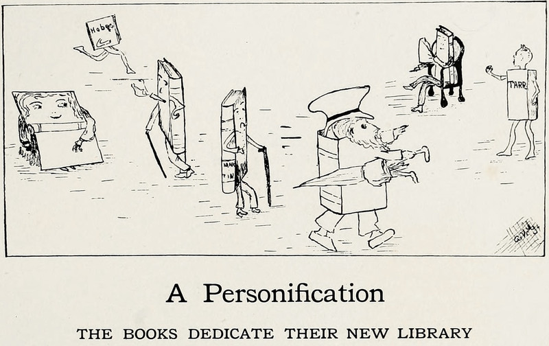 "A personification.  The books dedicate their new library."  From the State Female Normal School's 1903 yearbook.