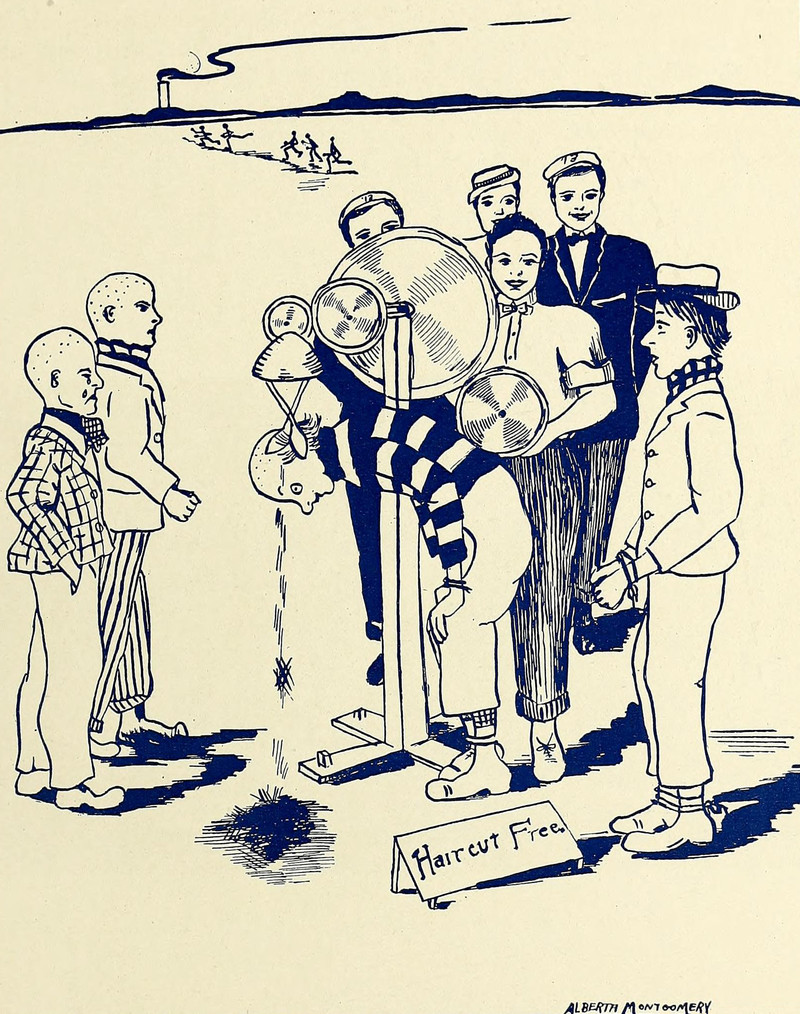 #vintage illustration #invention #vintage yearbook #yearbook #bald #haircut