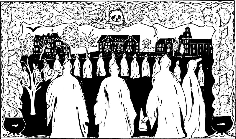 Sheet ghosts in a "sheet parade."  From Clarion's 1911 yearbook.  See How to Hoodoo Hack a Yearbook.
