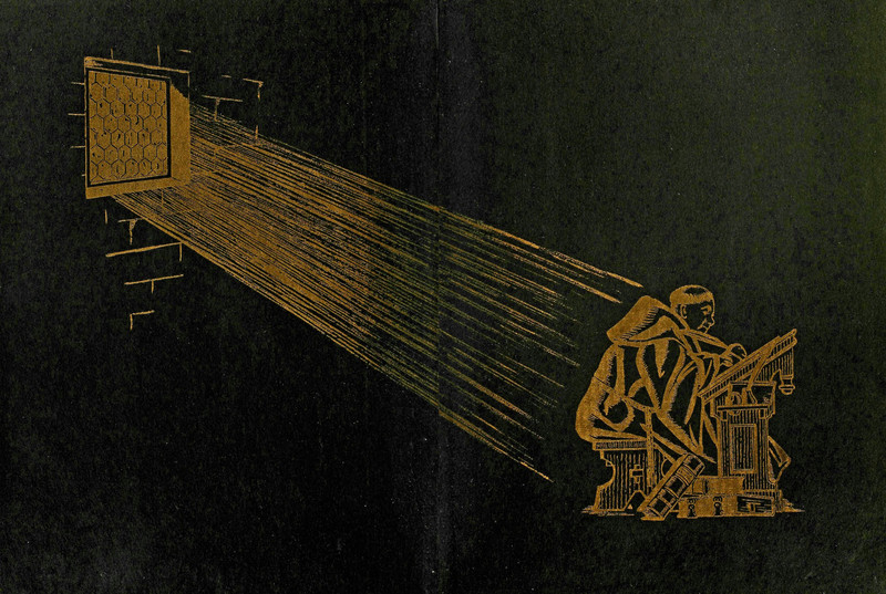 #vintage illustration #monk #vintage yearbook #yearbook #light and darkness #window #endpapers