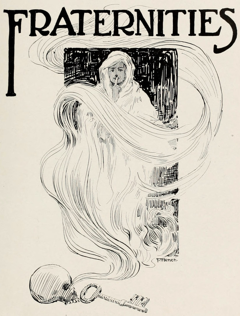 #vintage illustration #skull #fraternity #vintage yearbook #yearbook #secret society #hooded figure #key