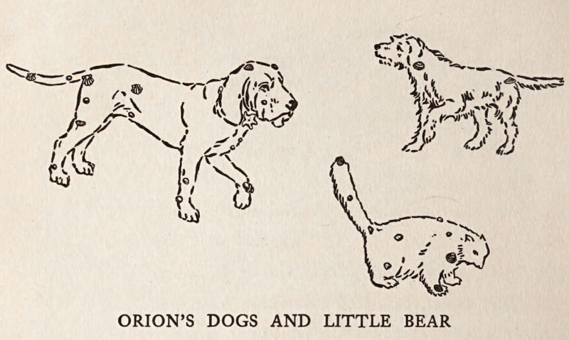 Orion's dogs and Little Bear.  From Star People by Katharine Fay Dewey, 1910.