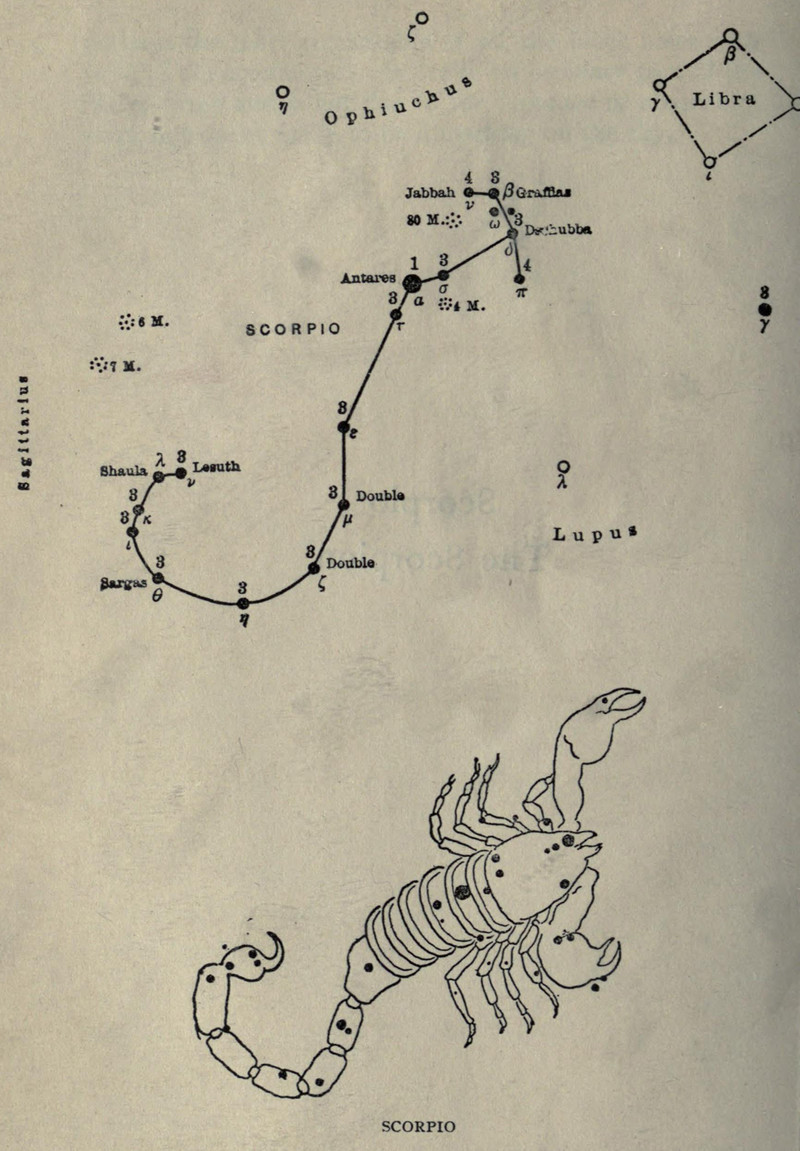 Two ways to find a cosmic scoprion.  From Star Lore of All Ages by William Tyler Olcott, 1911.