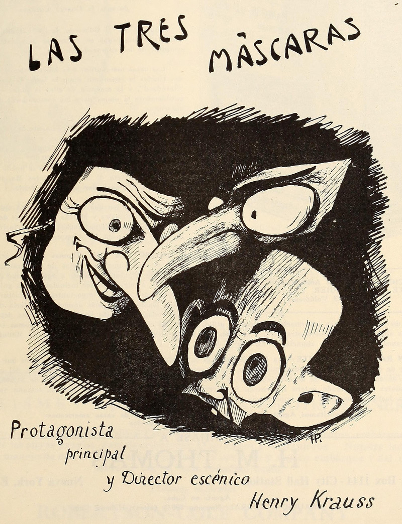 #vintage illustration #mask #vintage poster #three masks #henry krauss #poster