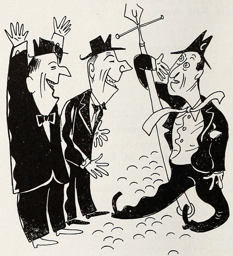The guy on the right swears he's not drunk but rather has been searching for a bottle for the last eight hours.  From Cine-Mundial, 1944.