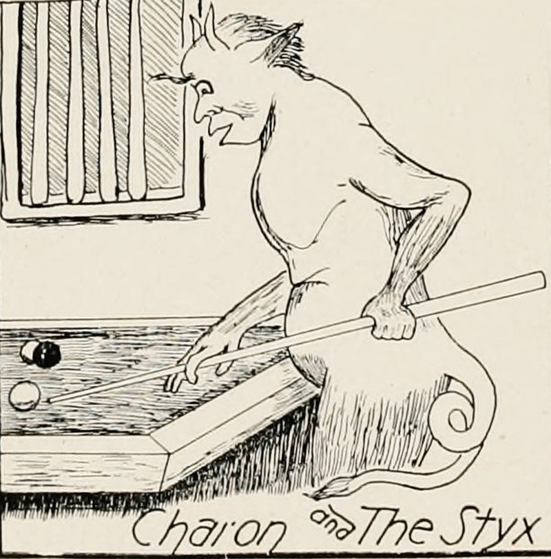 #vintage illustration #demon #vintage yearbook #yearbook #1920s #charon #billiards #pool table