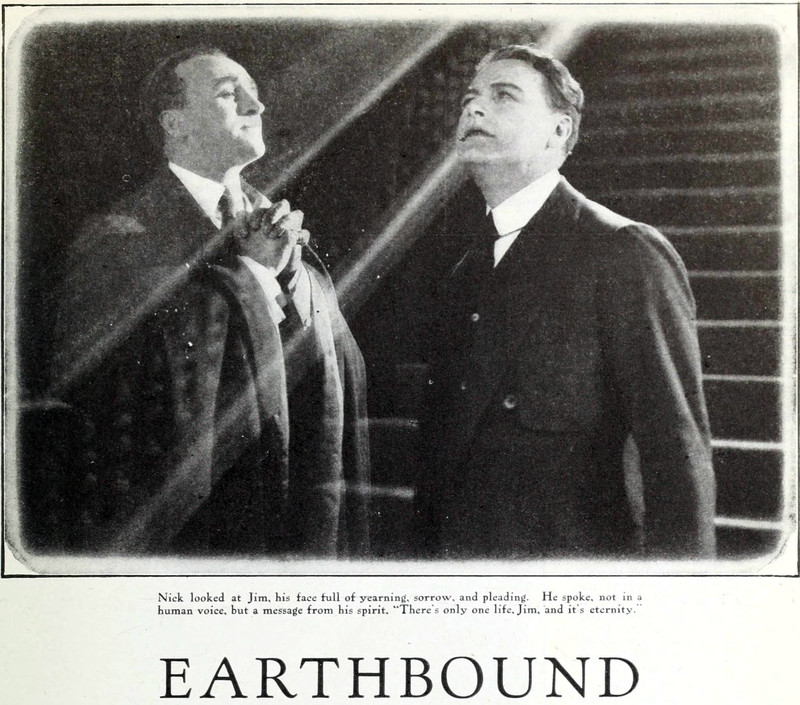 "Nick looked at Jim, his face full of yearning, sorrow, and pleading. He spoke, not in a human voice, but a message from his spirit. 'There's only one life, Jim, and it's eternity.'" From Photoplay Magazine, 1920.