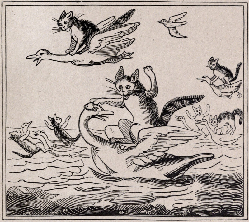 The cats rode geese.  From Dame Wiggins of Lee and Her Seven Wonderful Cats, Written Principally By a Lady of Ninety, 1923.