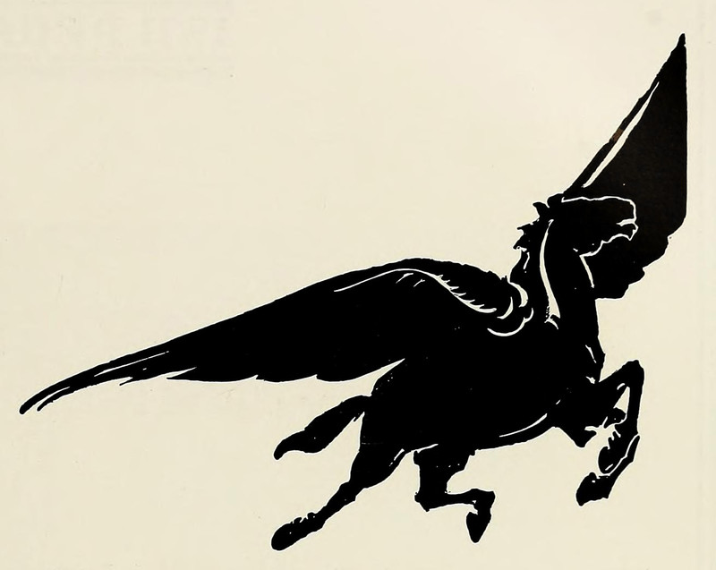 #vintage illustration #silhouette #pegasus #vintage yearbook #yearbook #flying horse #winged horse