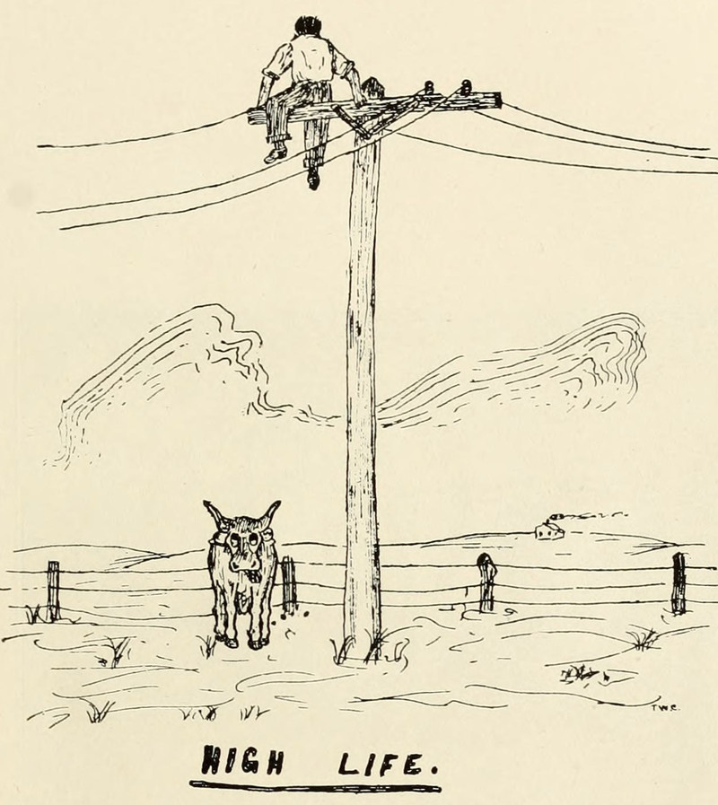 #vintage illustration #cow #vintage yearbook #yearbook #telephone pole #illustration #electrical pole #high life