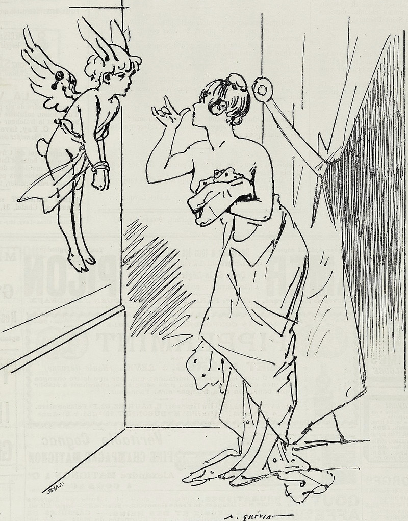 Pinned to the wall.  From Le Charivari, 1885.