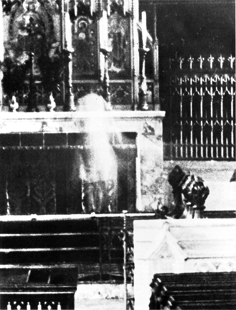 A spirit photograph from Encyclopedia of the Unexplained by Richard Cavendish, 1974.