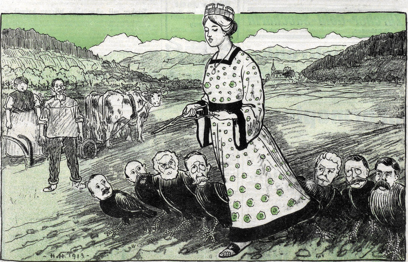 Trying to use your dowsing rod while surrounded by harpies.  Reblog if you've been there.  From Nebelspalter, 1913.