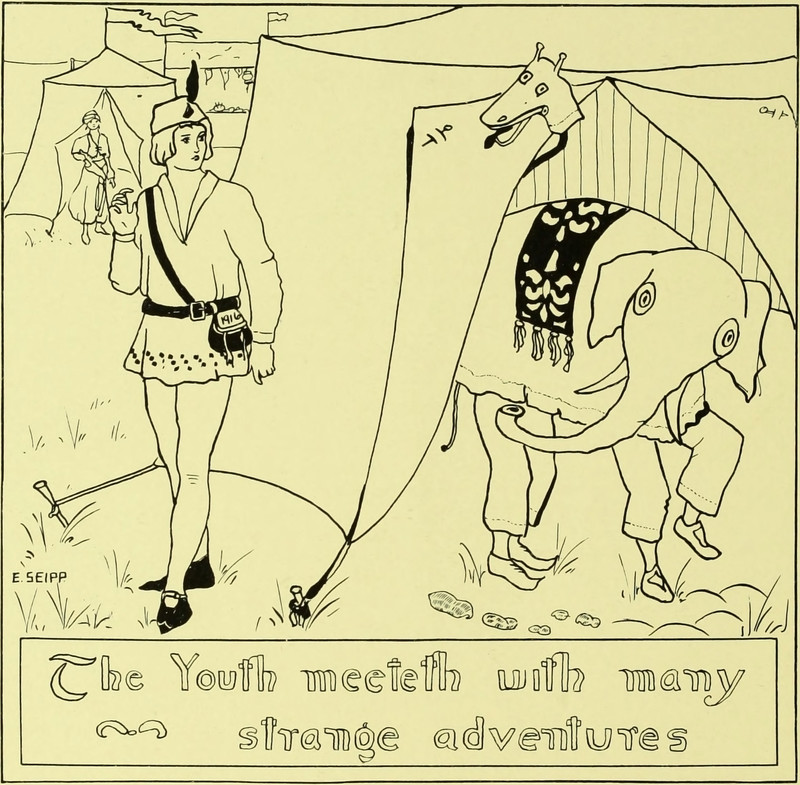 "The youth meeteth with many strange adventures."  From Barnard's 1916 yearbook.