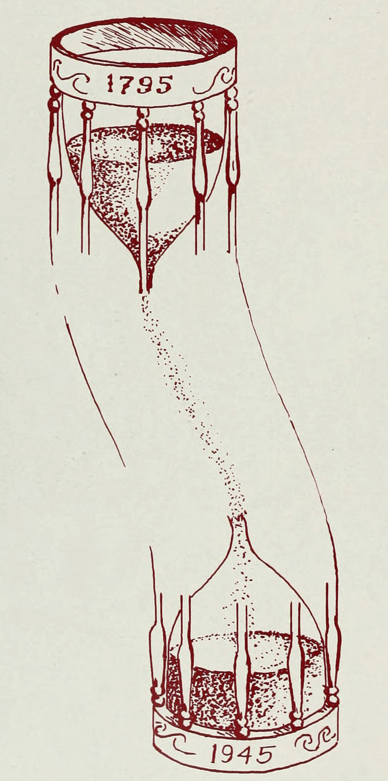 A method of time-bending by means of an hourglass.  From the University of North Carolina at Chapel Hill's 1945 yearbook.